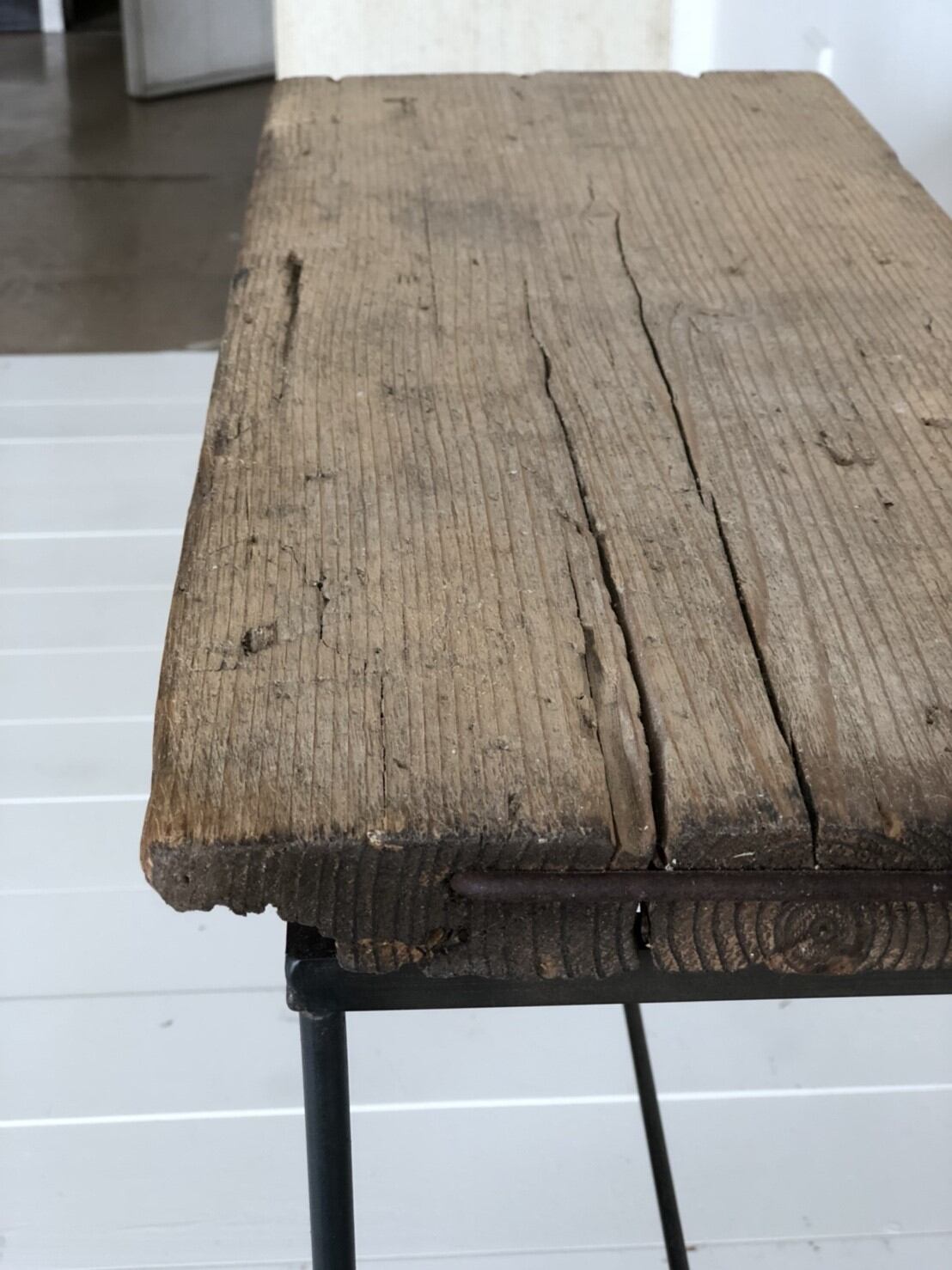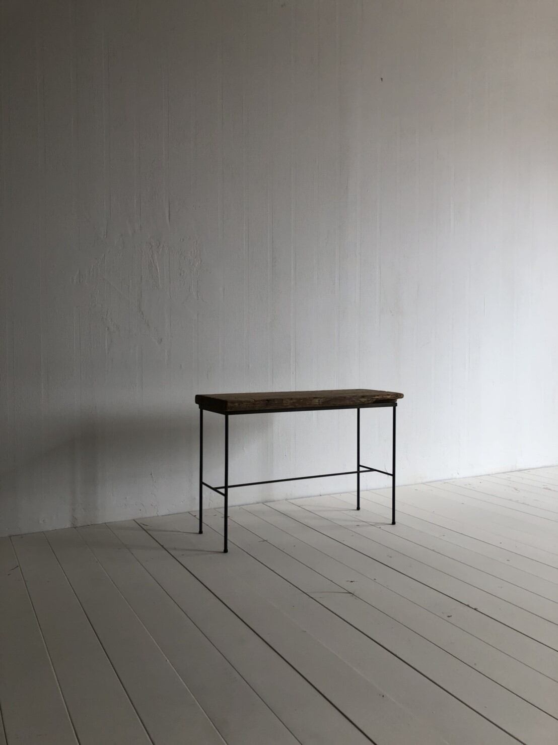 スチールの脚に古材の天板を取り付けたサイドテーブルです。