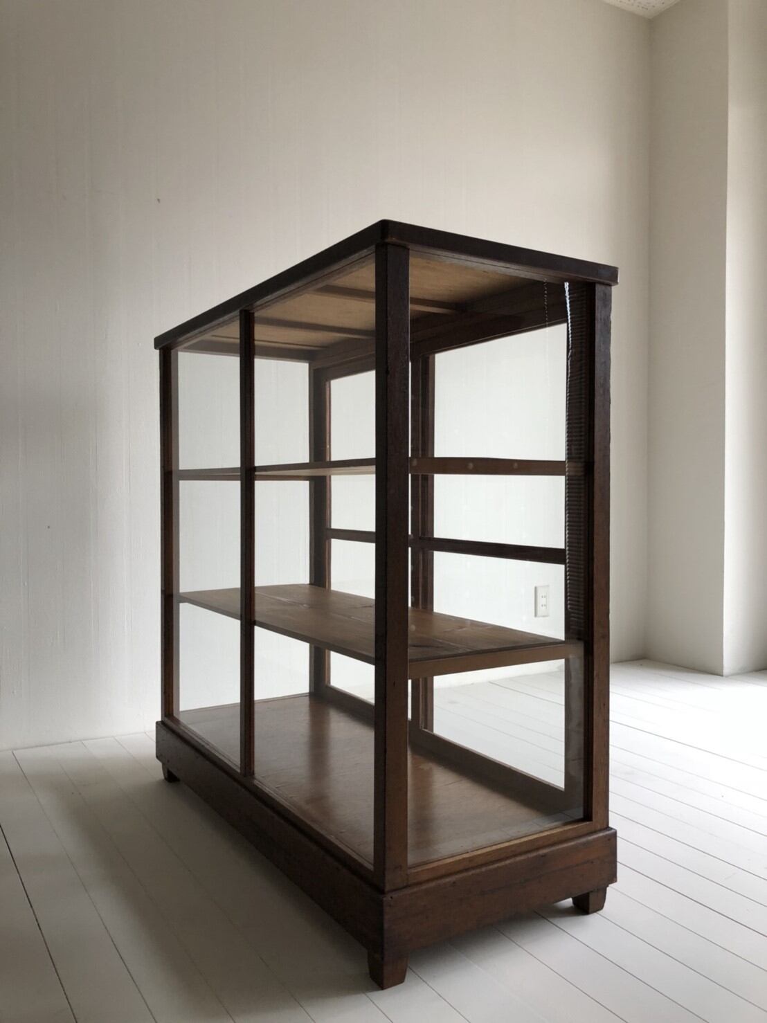 木部が飴色に経年変化したショーケースです。