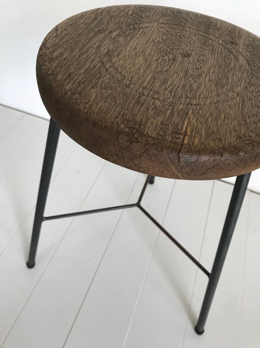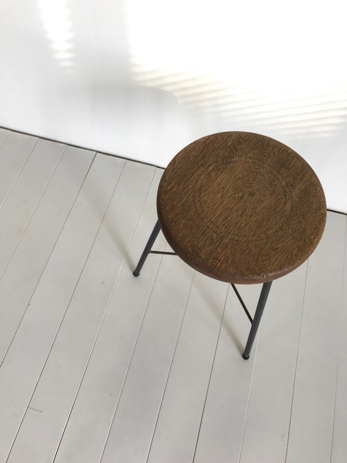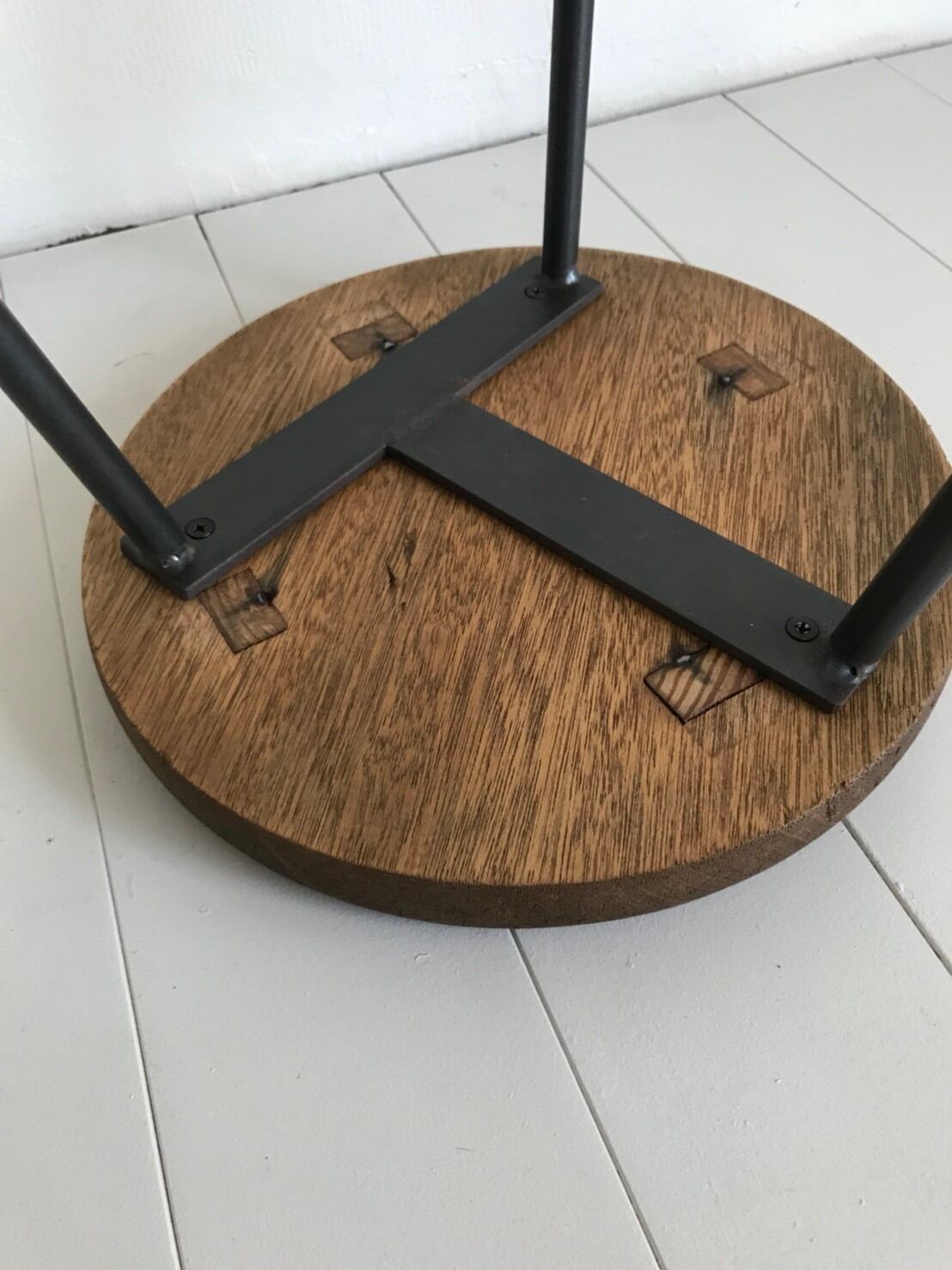 古い丸椅子の天板を使用していますので