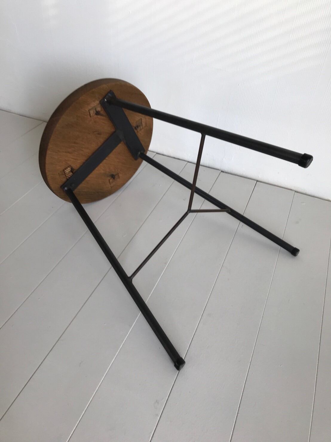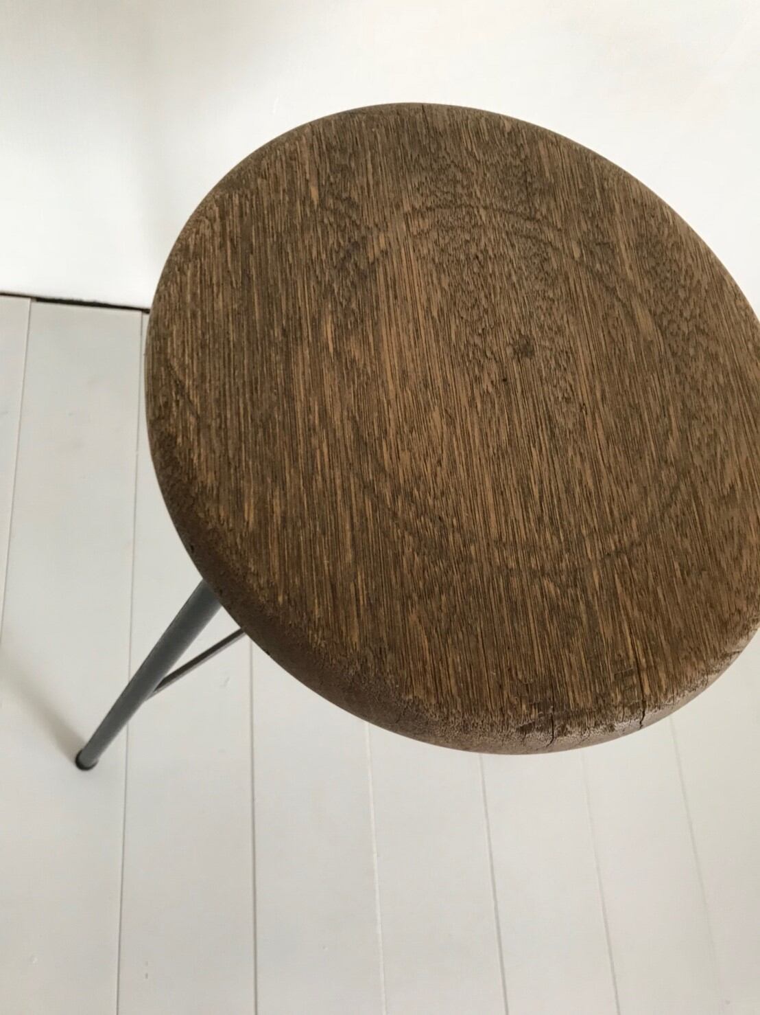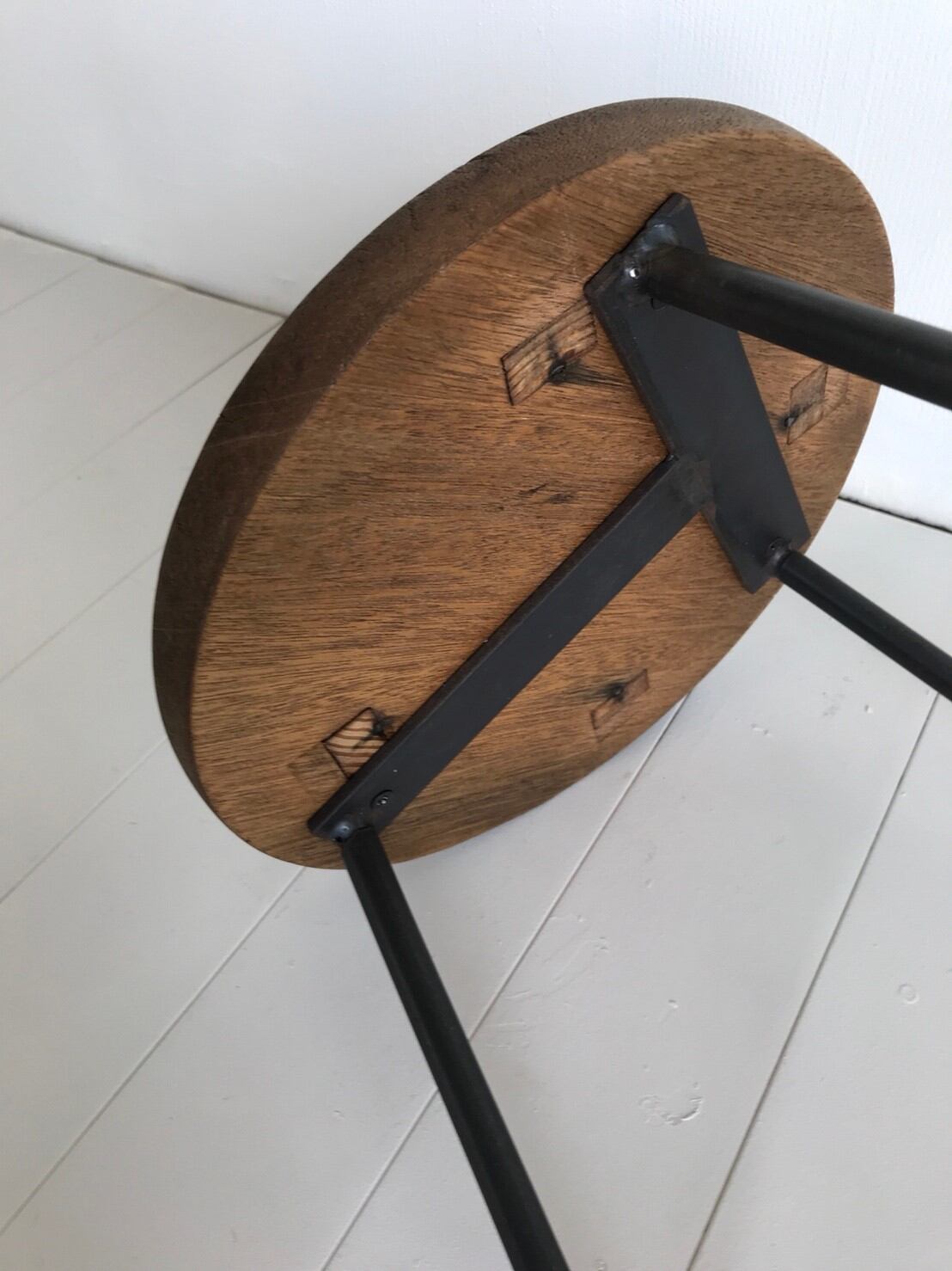 古い丸椅子の天板を使用していますので