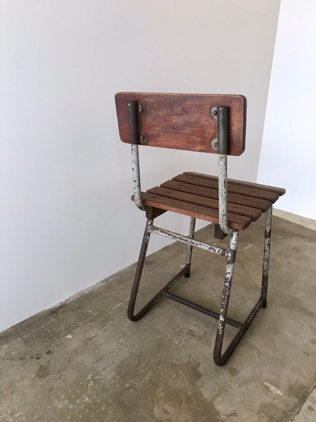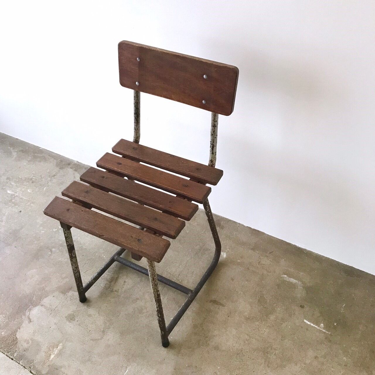 スクールチェアのようにも見えますが少し珍しい形。