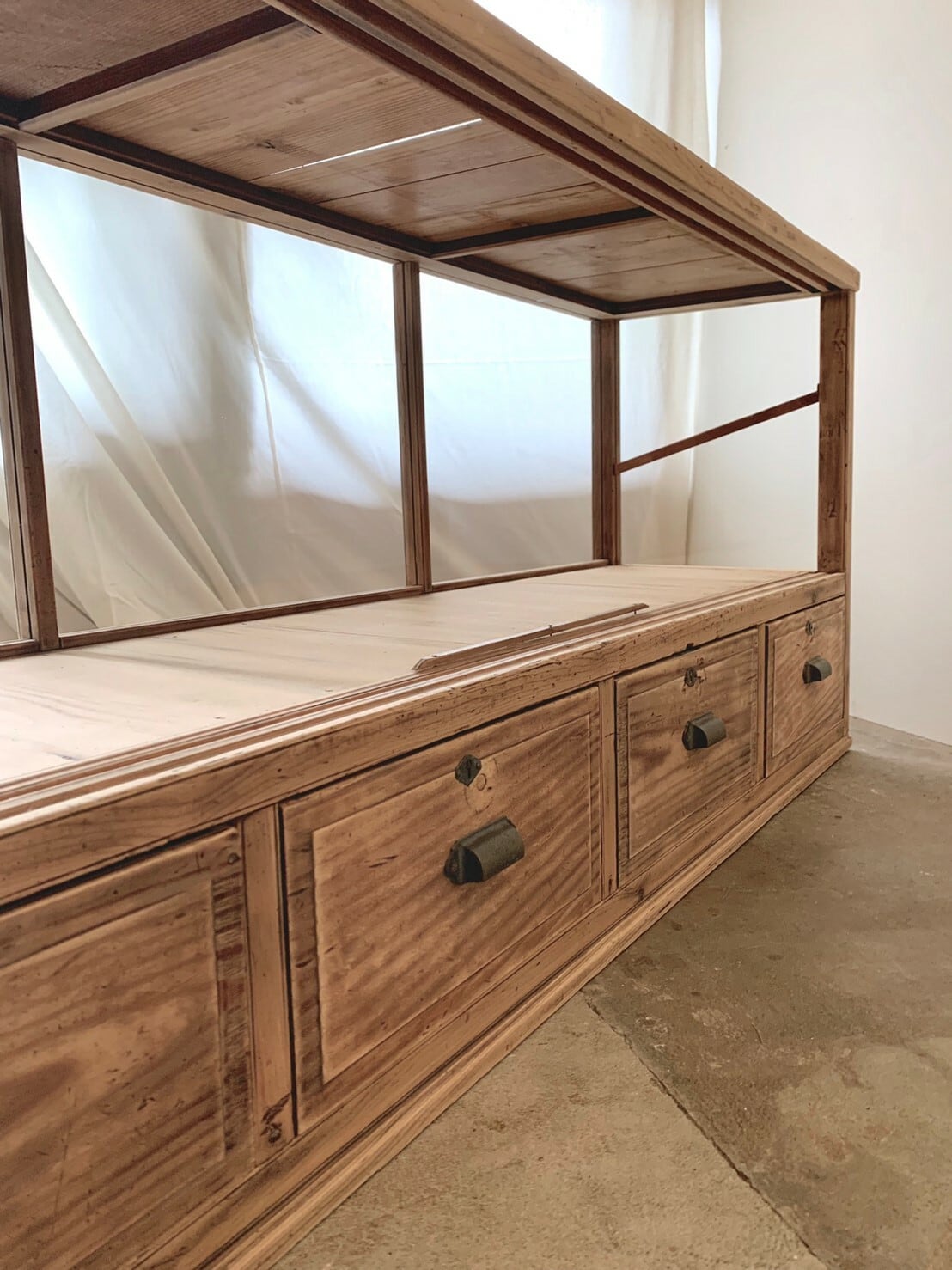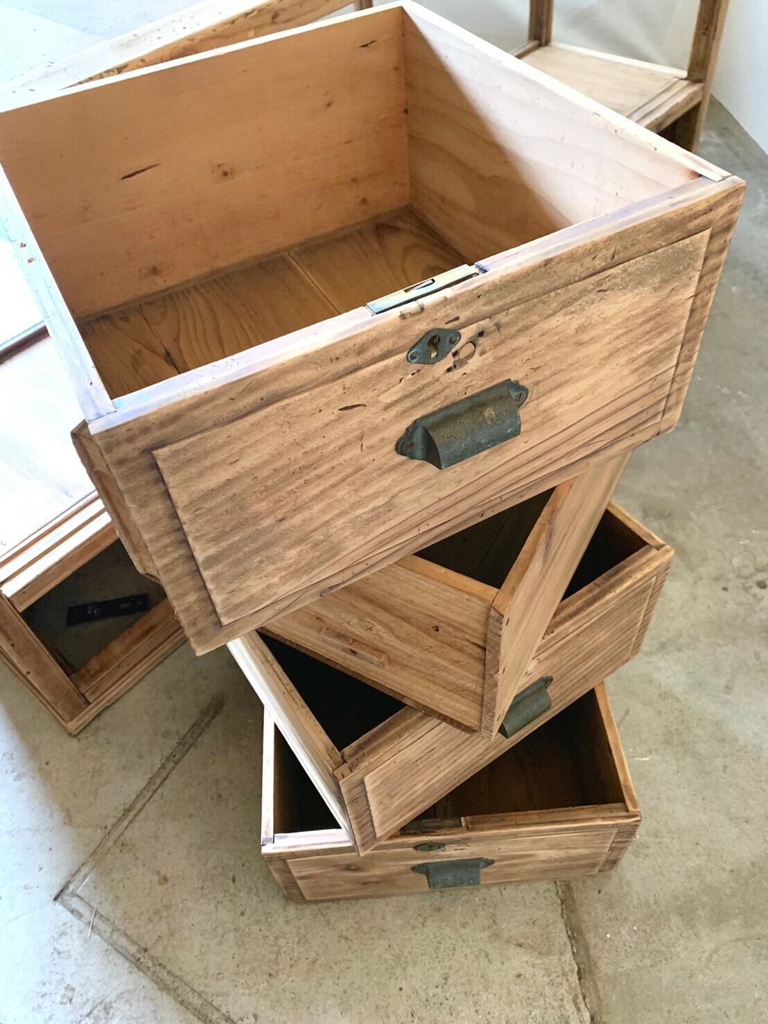 ・こちらで扱う家具の多くは長い時間の経過した古いものです。気持ちよく使用していただけるよう心がけていますが、古いものの雰囲気を残すよう手直しさせていただいていますので落としきれない汚れ、傷、割れ、反り、錆や虫食いなどがあります。古いものとご理解いただける方のご購入をお勧めします。気になることがありましたら写真でご確認いただきご注文の前にお気軽にお問合せください。