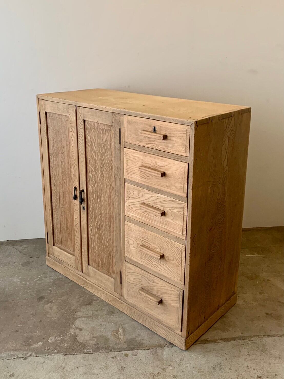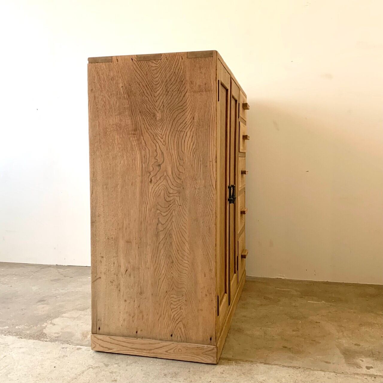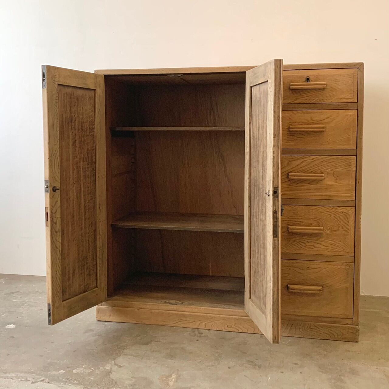開き戸と引き出し5杯の収納棚です。