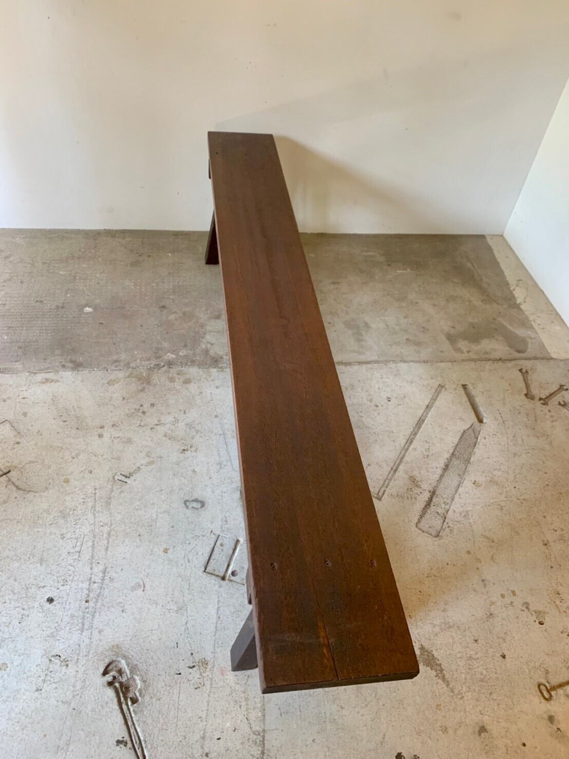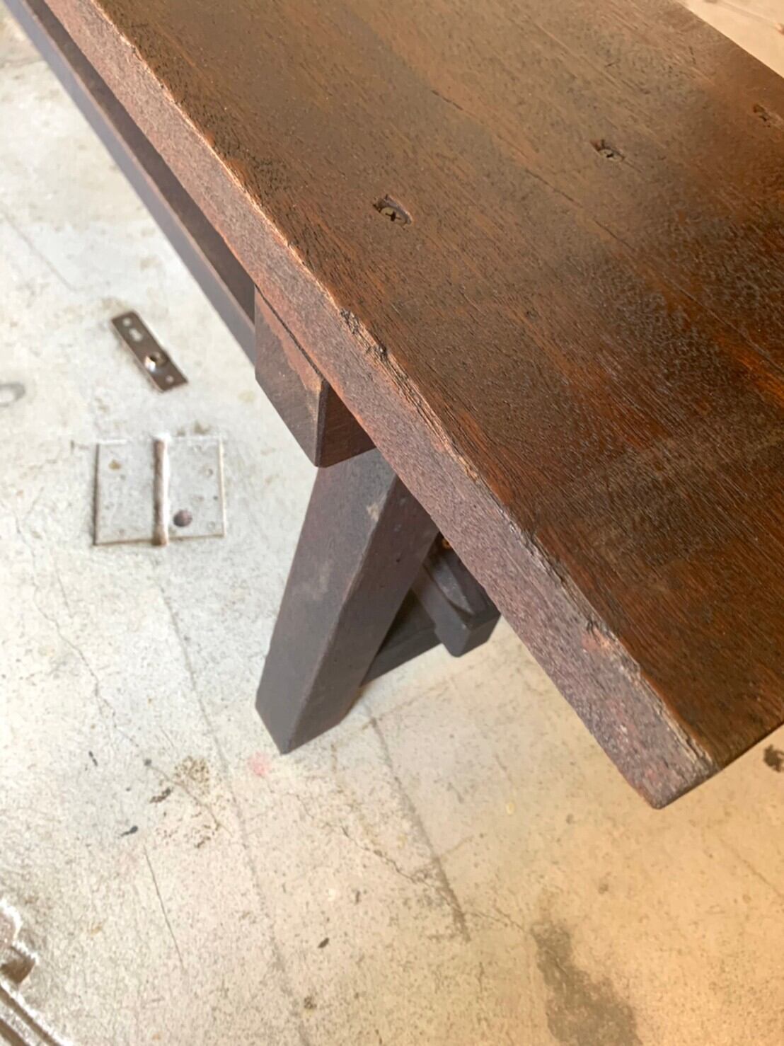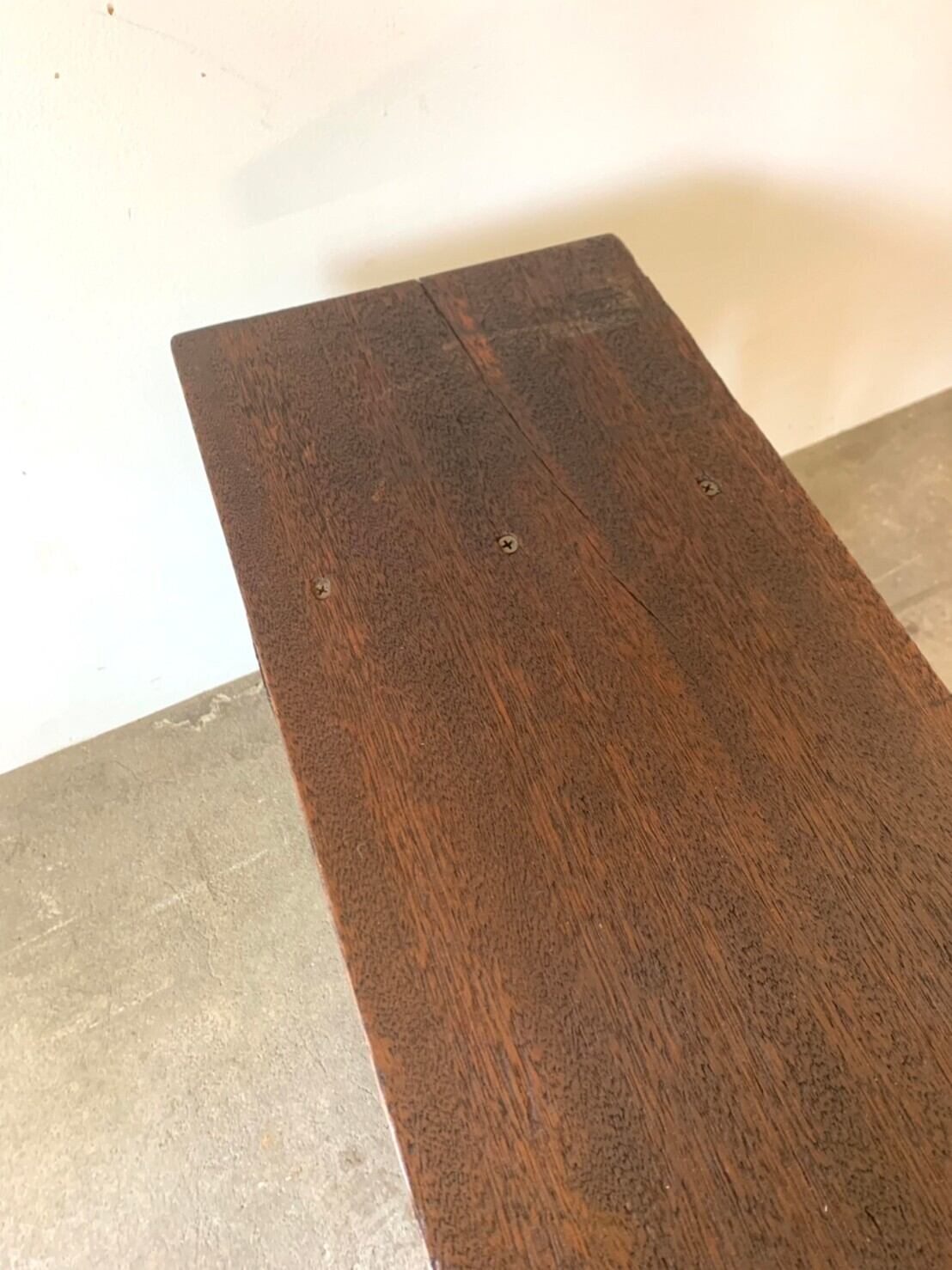 座りごこちを考えてか使われて行くうちにすりへったのか、天板が水平ではなく少し傾斜があります。