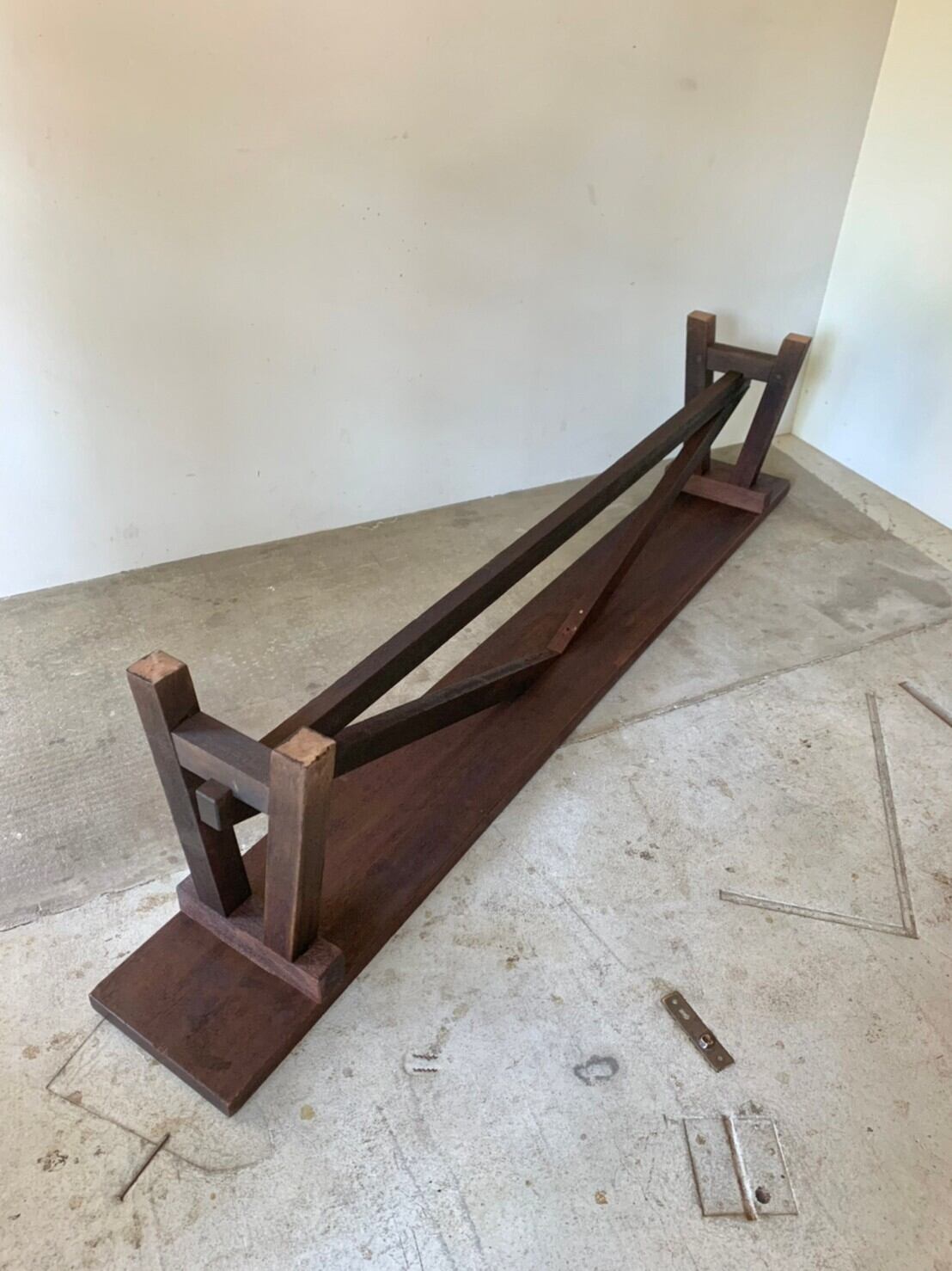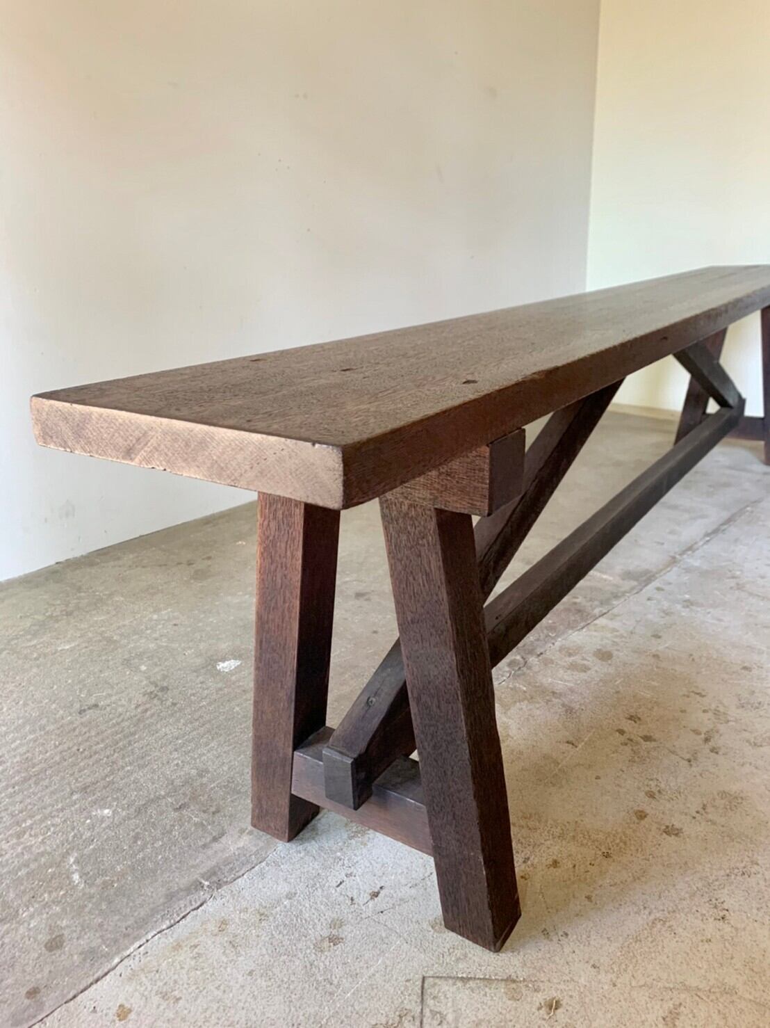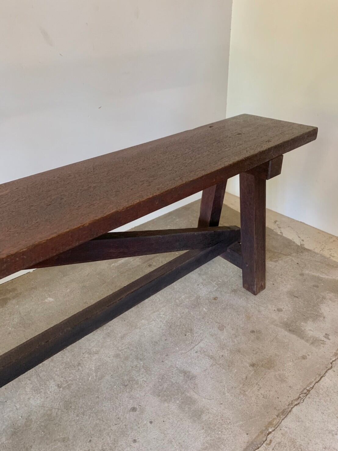 座りごこちを考えてか使われて行くうちにすりへったのか、天板が水平ではなく少し傾斜があります。