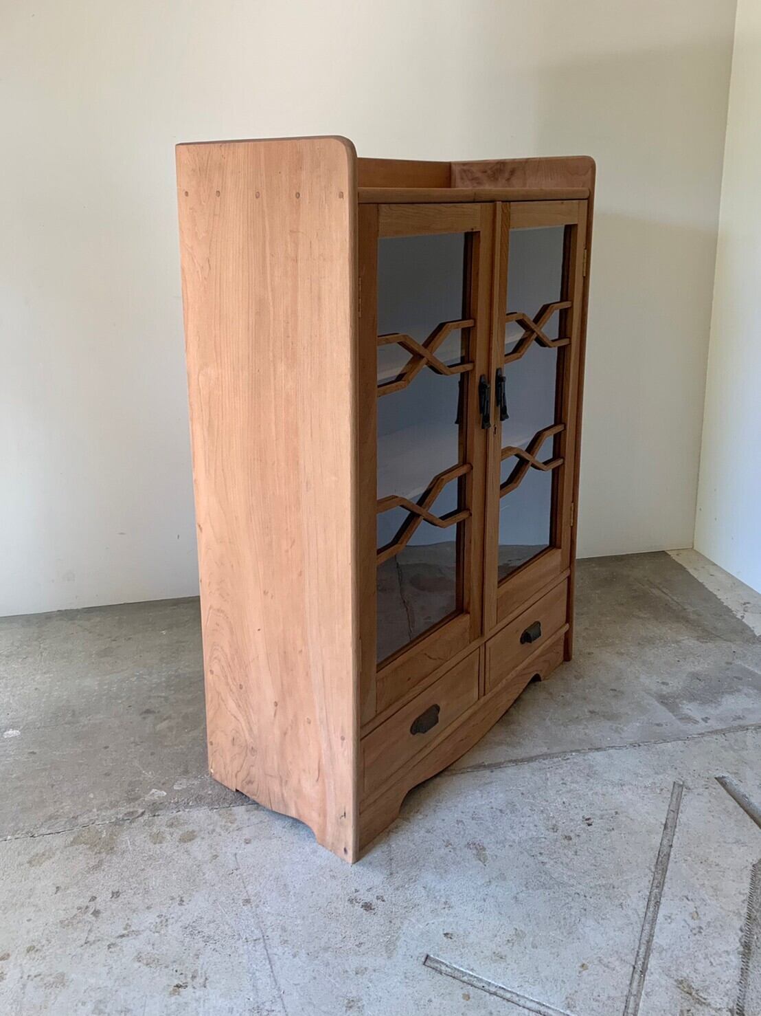 古いゆらゆらガラスの入ったキャビネット。