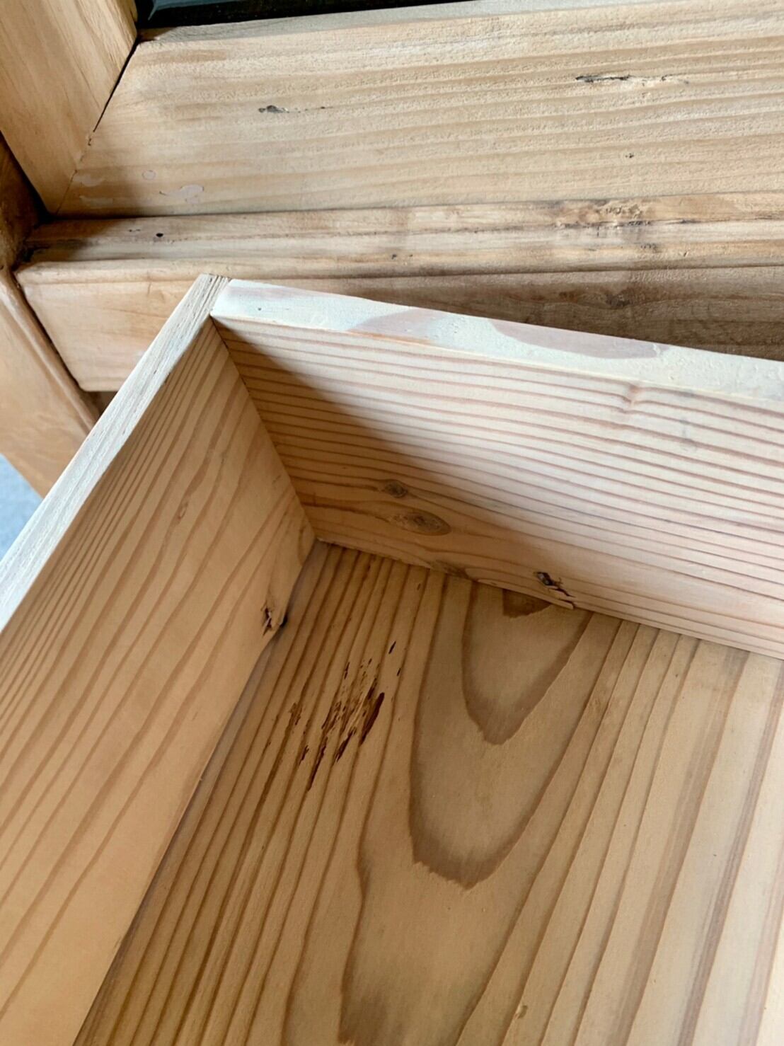 ・基本的には透明のオイル仕上げですが木部の経年変化により無塗装の状態よりも深い濡れ色になりますのでご注意ください。