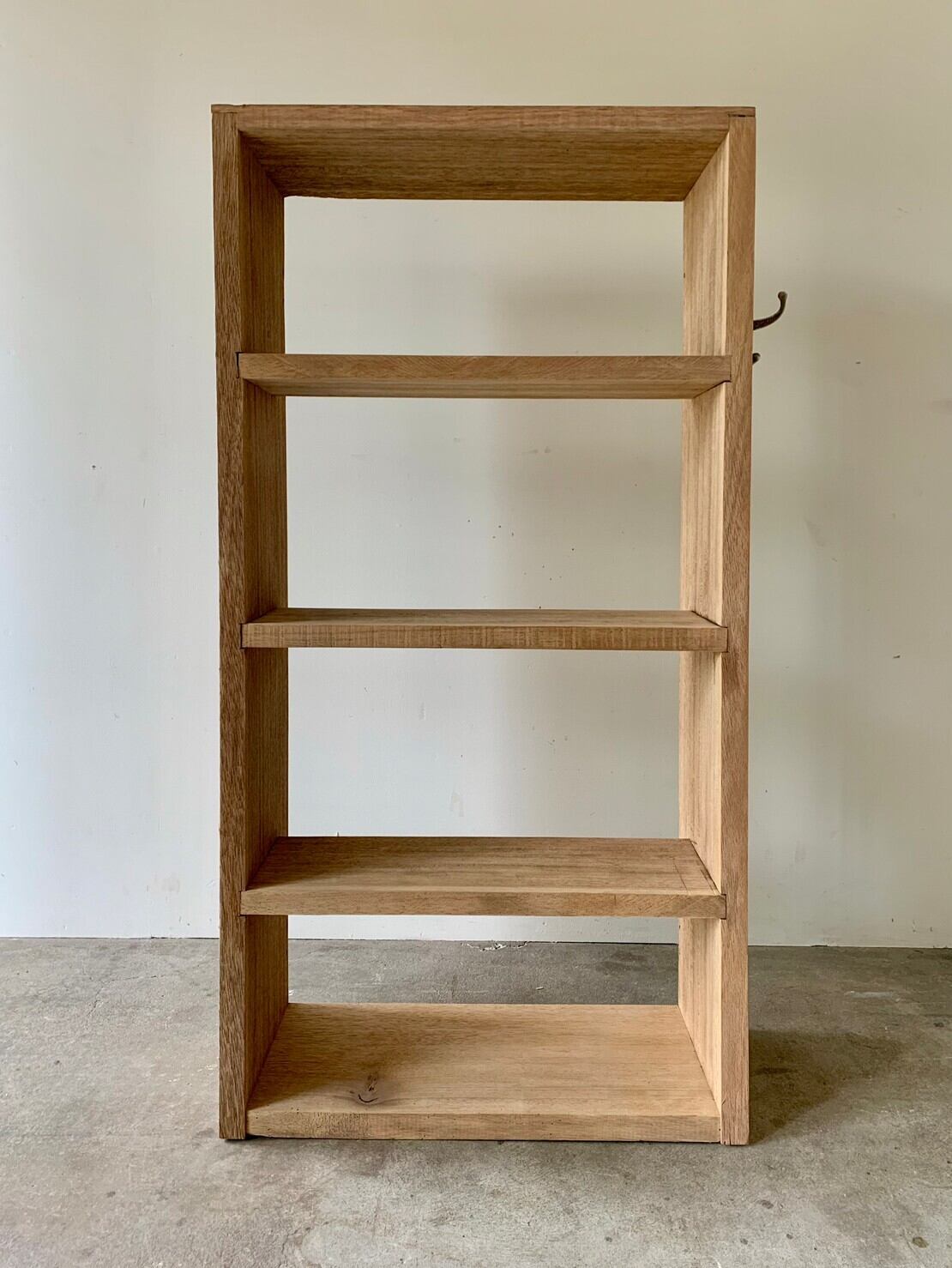 雰囲気のあるフックが付いた棚。