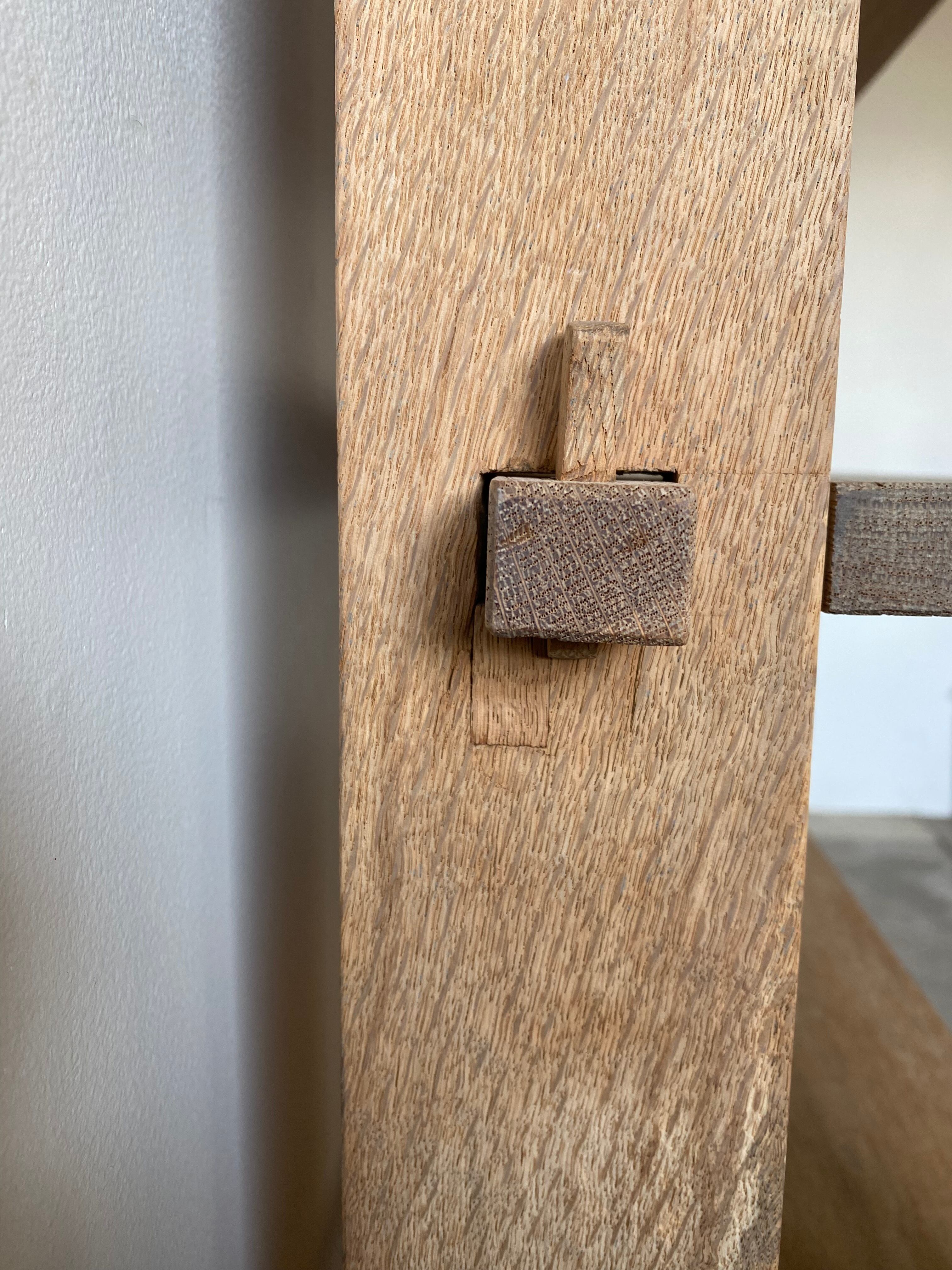 全体的にがたつきはなくしっかりしている印象ですが くさびで締めてありますので緩むこともあります。くさびを叩いていただければ再度ご自身で固定することが可能です。
